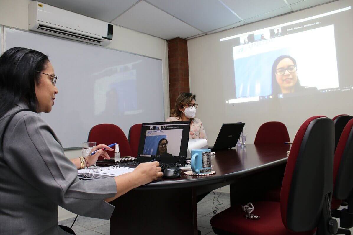 Esta mañana la Consejal Propietaria, Licda. Gloria Elizabeth Álvarez Álvarez, directora interina Ad-Honorem de la Escuela de Capacitación Judicial “Doctor Arturo Zeledón Castrillo”, sostuvo una reunión virtual con personeros de la Oficina de las Naciones Unidas contra la Droga y el Delito para Centroamérica y el Caribe en El Salvador (UNODC-POSLV), oficina que está desarrollando el proyecto de “Fortalecimiento a la implementación de herramientas de gestión para casos de desapariciones y tortura que afectan a mujeres, hombres y jóvenes en El Salvador”, con el apoyo financiero del Gobierno de Canadá.
