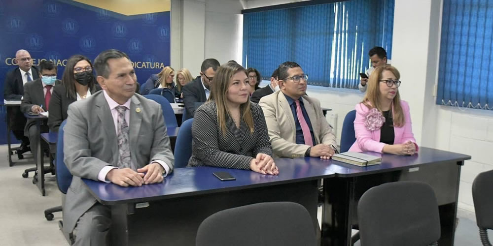 El evento inaugural de este curso contó con la participación del Consejal Propietario Lic. Santos Guerra Grijalba, quien en representación del #PlenoCNJ brindó las palabras de bienvenida; además del Consejal Propietario Máster Alcides Salvador Funes Teos, la Consejal Propietaria Máster Verónica González Penado y por la Corte Suprema de Justicia, la Magistrada, Máster Sandra Luz Chicas de Fuentes, Presidenta de la Sala de lo Penal y el Magistrado, Lic. Héctor Nahún Martínez.