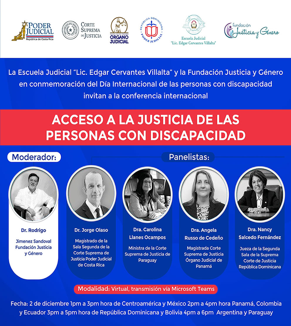 La Escuela Judicial “Lic. Edgar Cervantes Villalta” y la Fundación Justicia y Género en conmemoración del Día Internacional de las personas con discapacidad, invitan a la conferencia internacional “Acceso a la Justicia de las personas con discapacidad”.
